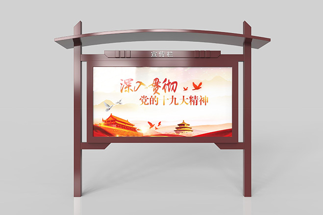 宣傳欄是一種VI應(yīng)用,是組織或企業(yè)單位等進(jìn)行自我宣傳的有效手段,常被應(yīng)用于街道,工廠等公共場(chǎng)所;一般采用不銹鋼為框架,鋼化玻璃或者耐力板為面板,鋁合金為頂棚,面板可以打開(kāi)更換宣傳畫(huà)面。現(xiàn)如今,宣傳欄廣泛應(yīng)用于學(xué)校、小區(qū)、會(huì)議館、展廳等各個(gè)場(chǎng)地。